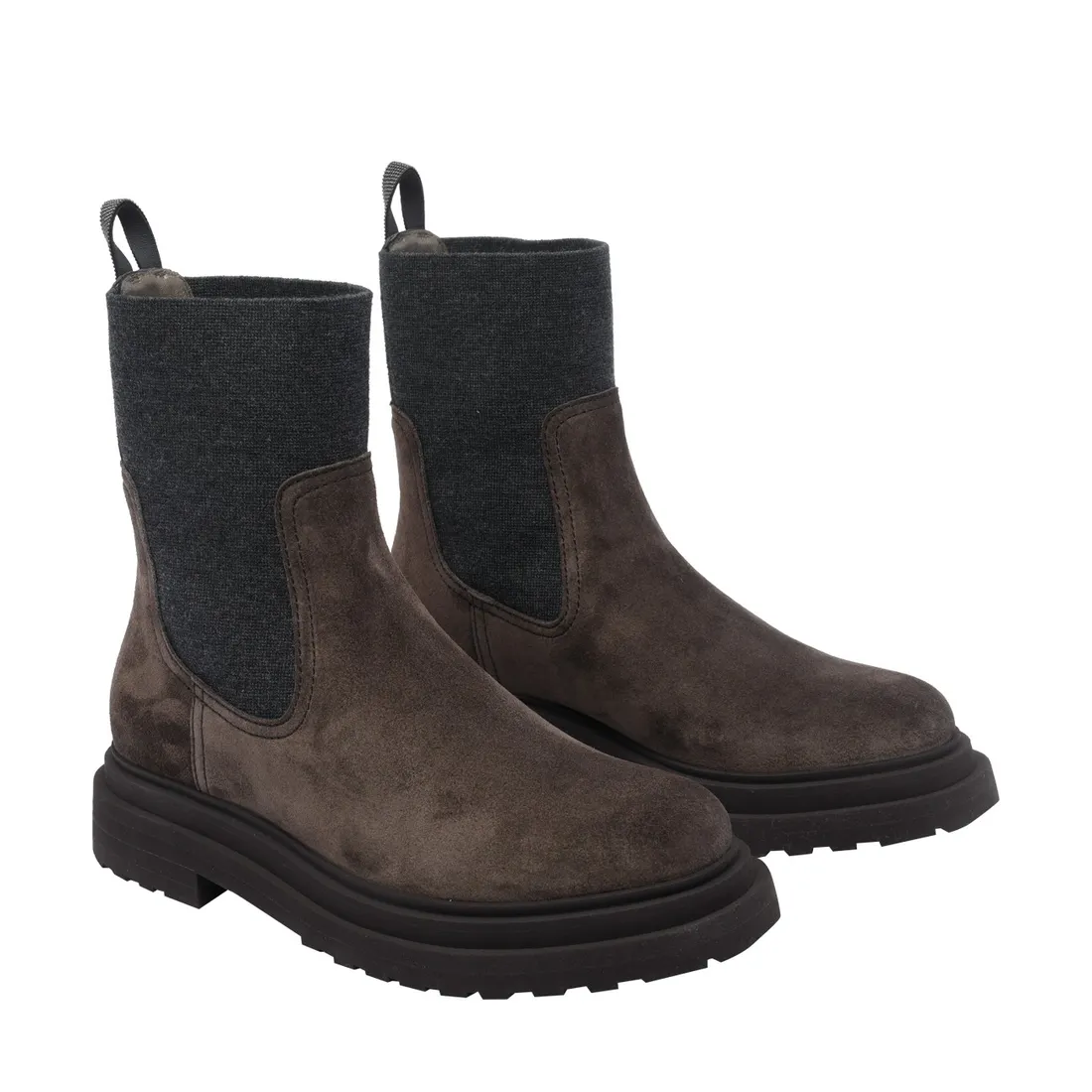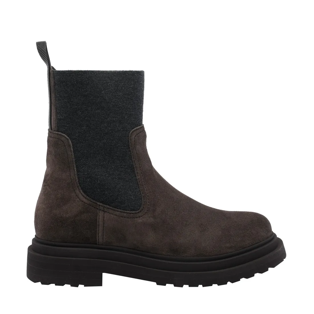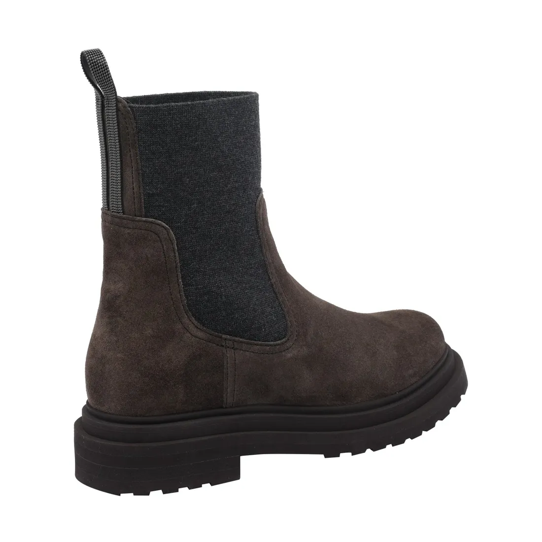 SUEDE BOOT WITH KNITTED INSERT AND PRECIOUS LOOP DETAIL